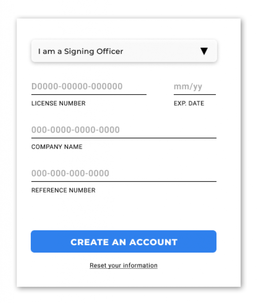 While signing up an account, the user will be asked to select a role. Different roles have access to different features. Such as builders will be able to create/edit registrant information and manage calendar; signing officers on managing and sorting documents; lawyers can only sign documents.